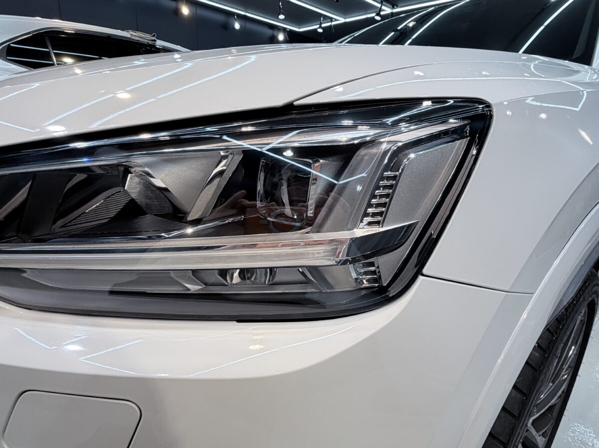 輸入車、特にアウディのヘッドライトはハードコートが硬い分、経年劣化によるクラックが発生しやすい傾向があります。今回はクラック除去研磨→スチーマー施工→プロテクションフィルム施工という3段階のW施工で、ヘッドライトを完全に復元しました。
