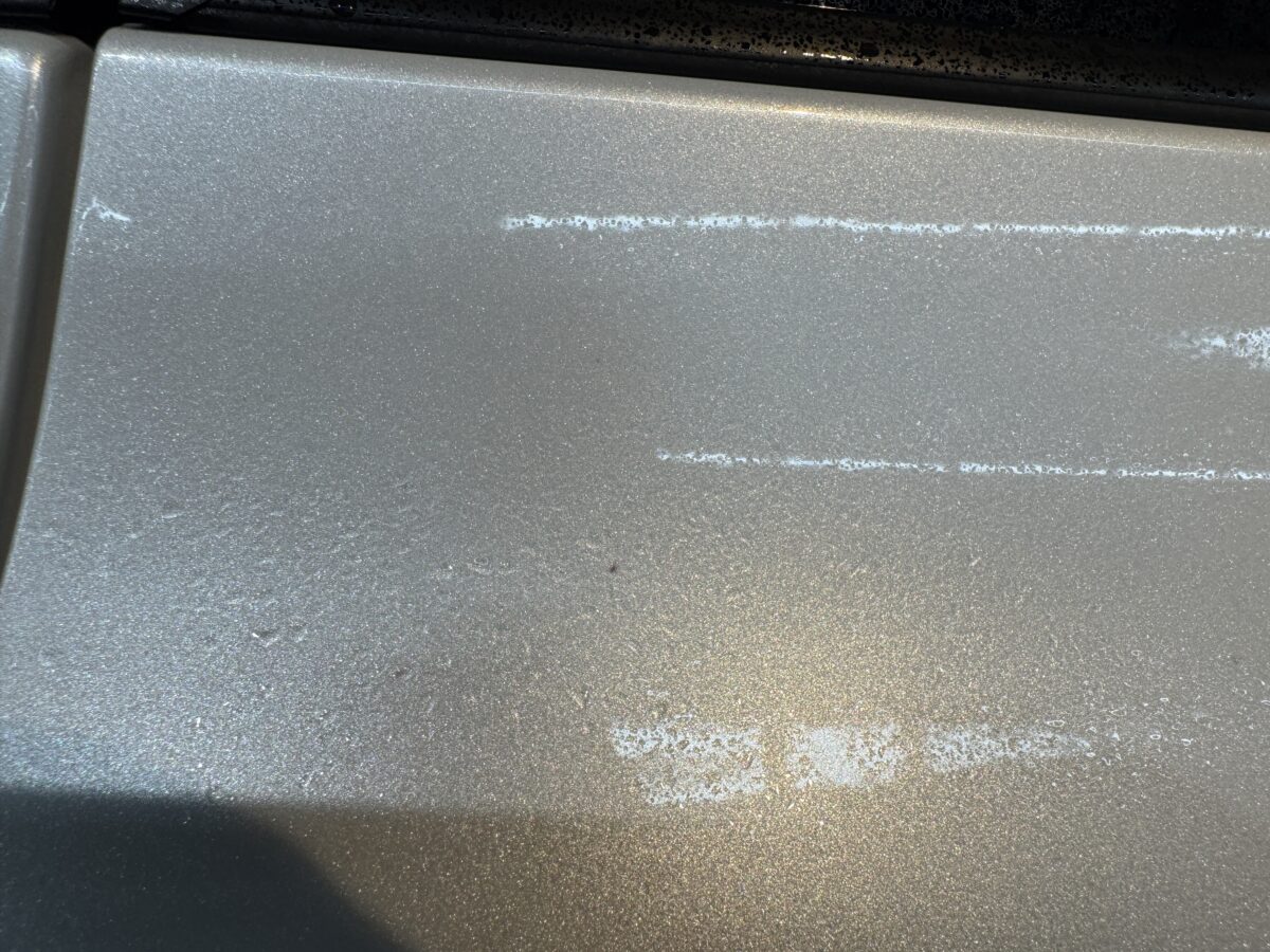 この後の研磨作業で、新車特有のボソボソ肌を取り除いて行きます。